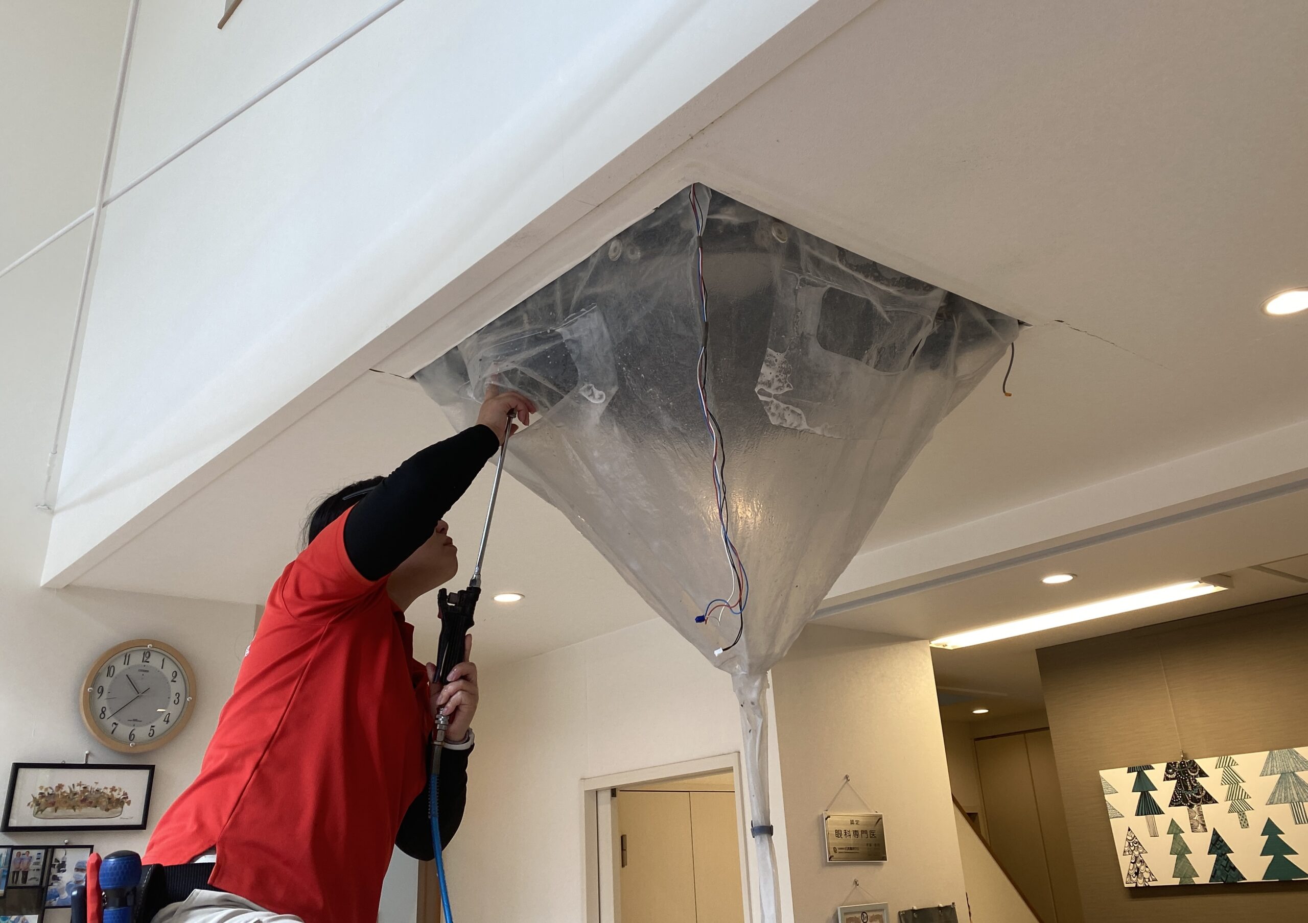 天カセエアコンクリーニング【千葉県茂原市眼科皮膚科医院のエアコン】